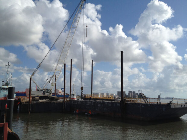 Tugboat Melissa spent several days unloading a float on float off vessel loaded with floating assets for Shanghai Construction Corporation.